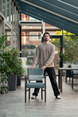 Zwaarder: laat de stoel los terwijl je de oefening doet. Lukt dit zonder handen? Zak dan iets dieper.